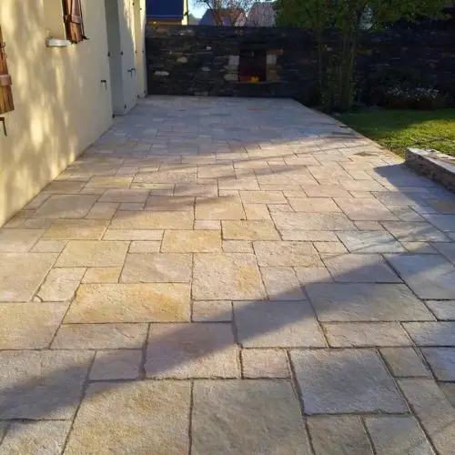Terrasse pavée et terrasse dallée